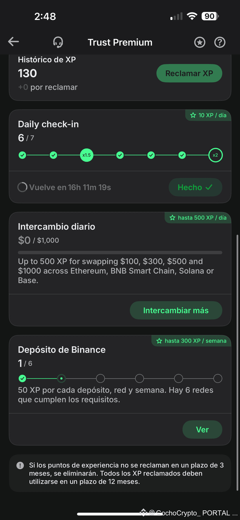Tu objetivo es acumular Trust XPs haciendo acciones diarias. El nivel GOLD es tu billete para la élite: