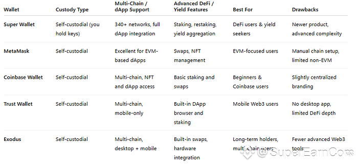 Nonetheless, Super Wallet’s innovation, scalability, and yield-focused architecture make it the most advanced Web3 wallet available in 2025.