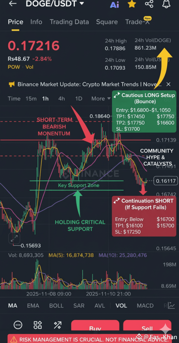 LONG $0.16800 – $0.17050 (Near strong horizontal support) TP1: $0.17450 (MA 25 Re-Test) $0.16700