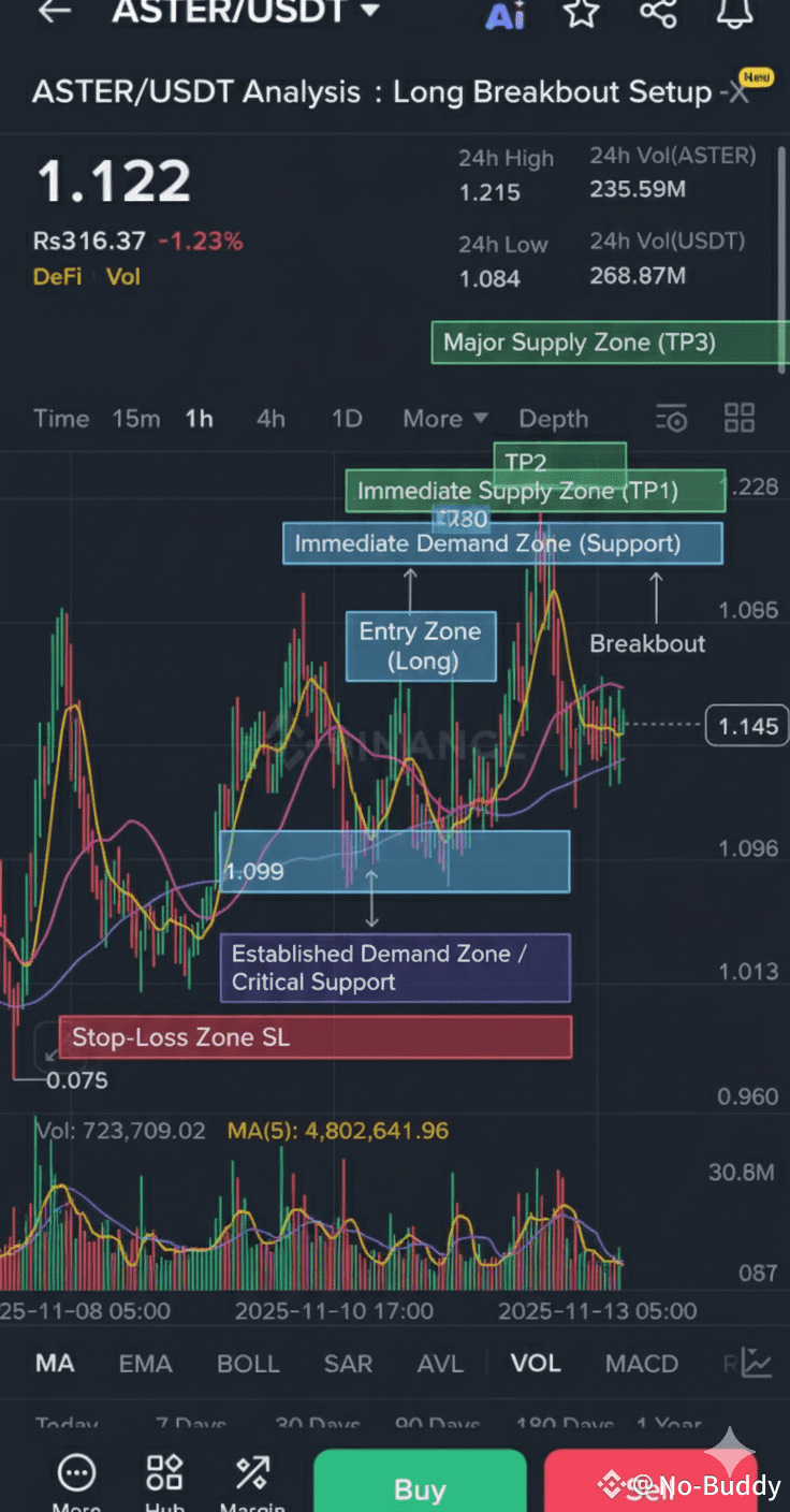 ⚙️ Technical Analysis (1H Chart: ASTER/USDT)
