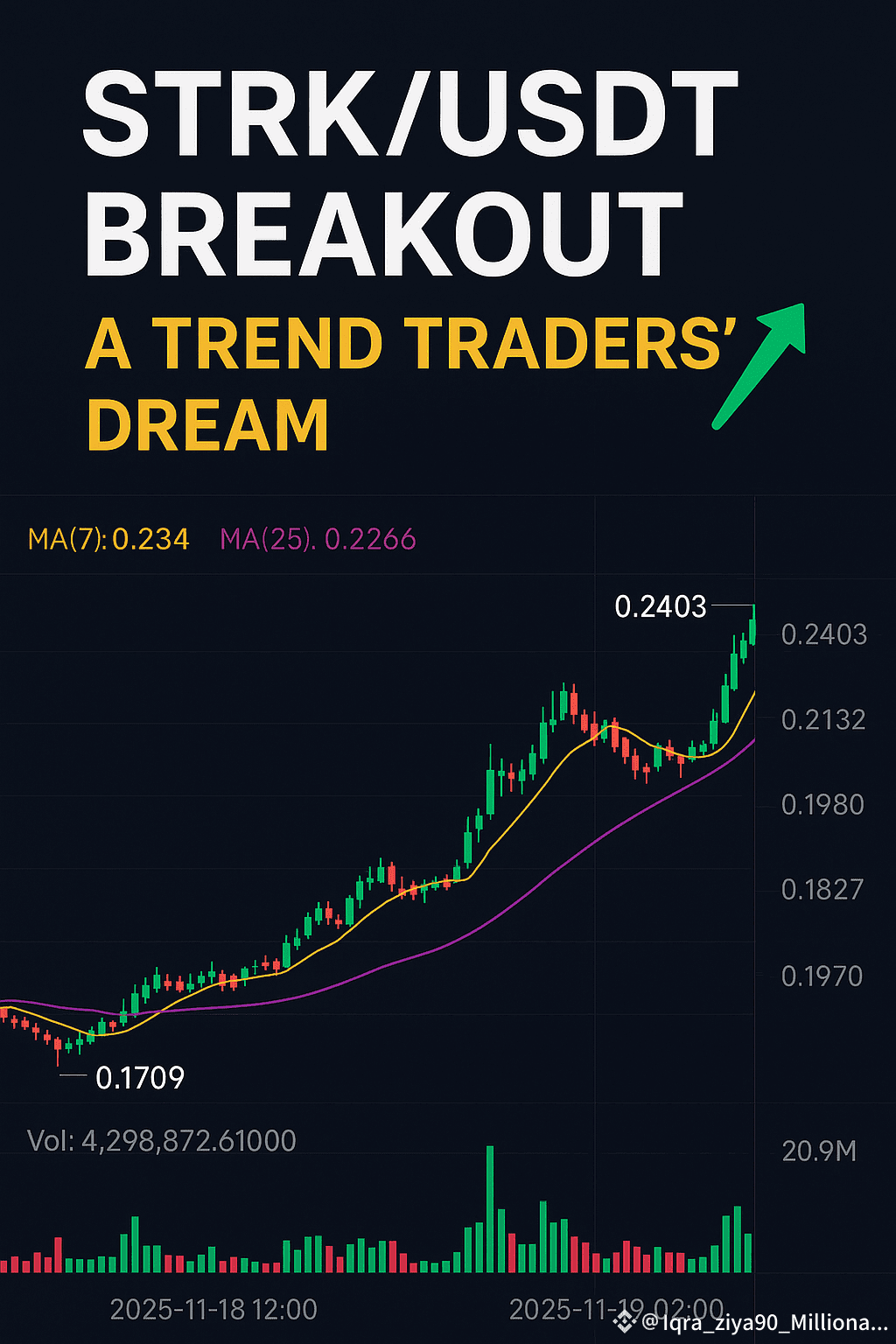 There’s actual interest — real participation — pushing $STRK upward as it approaches the 0.2403 resistance zone.