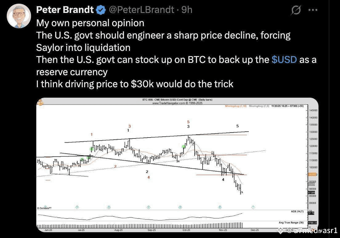 جديد: 💰🚨 قال بيتر براندت: "إذا كانت الولايات المتحدة تريد حقًا بيتكوين $BTC كأصل احتياطي، فما عليها إلا خفض سعره إلى 30 ألف دولار، وإجبار سيلور على التصفية، والحصول على كل شيء بسعر زهيد