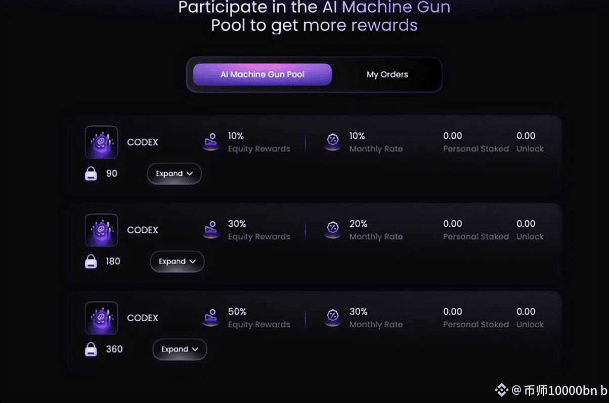而在近期,CodexField 进一步开放了 AI 机枪池产品,作为基于自研的 Codex AI Engine 运行,通过实时数据分析、自动化策略执行与跨市场调度,为参与者提供可持续的链上收益路径。随着 AI 机枪池的推出,CodexField 的价值循环机制正式进入运营状态,生态增长将从以用户操作驱动的模式,过渡到由 AI 主导的持续增长结构。