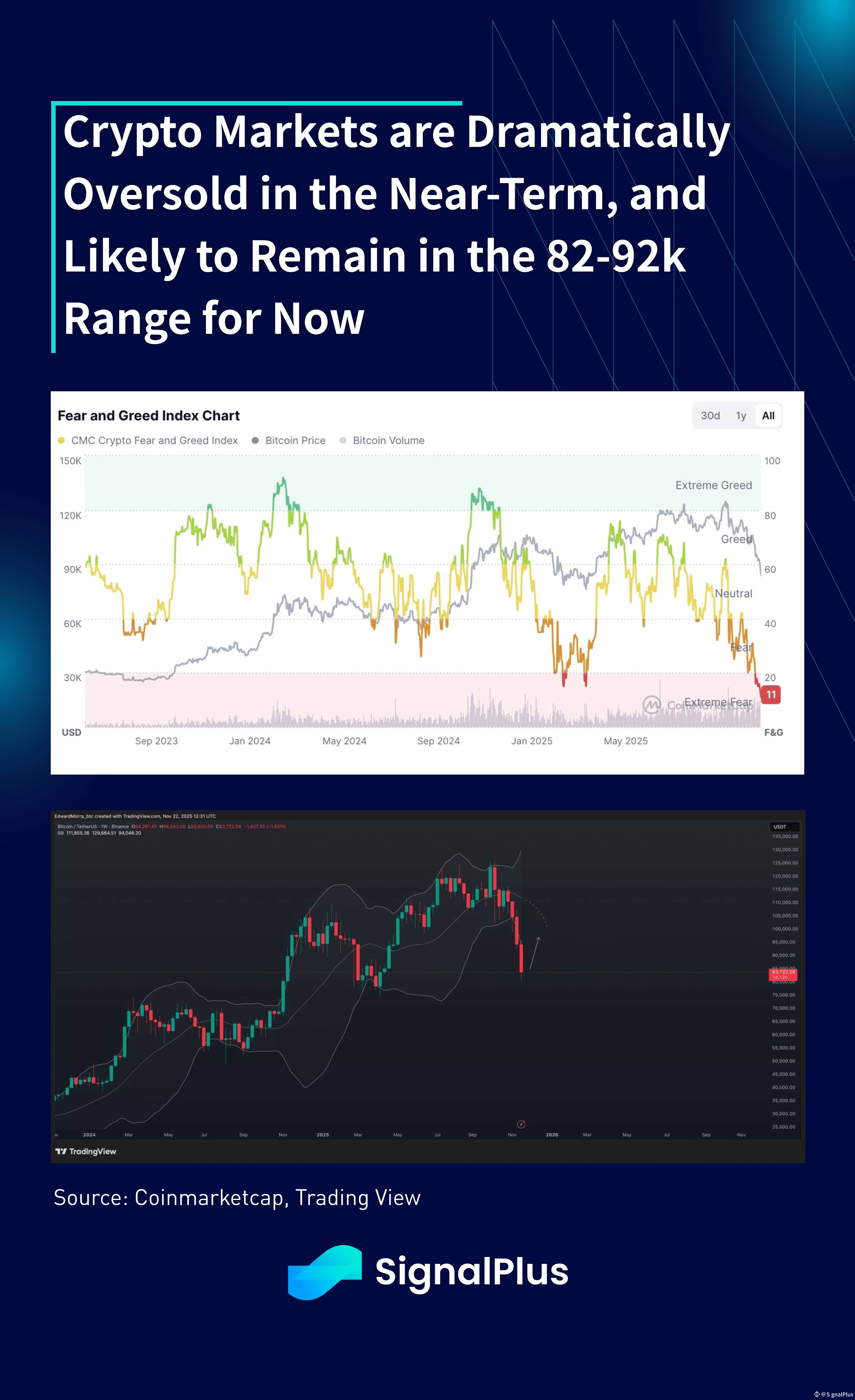 With that being said, markets are currently so oversold from both sentiment and technical perspectives (eg. Bollinger bands), and prices are likely to have seen local lows for now absent any new exogenous factors (eg. DAT forced selling), and we expect prices to range between 82–92k from here. Next significant price support comes at around the 78k area, and a sustained break below would open up further significant downside, but is not the base case scenario for now.