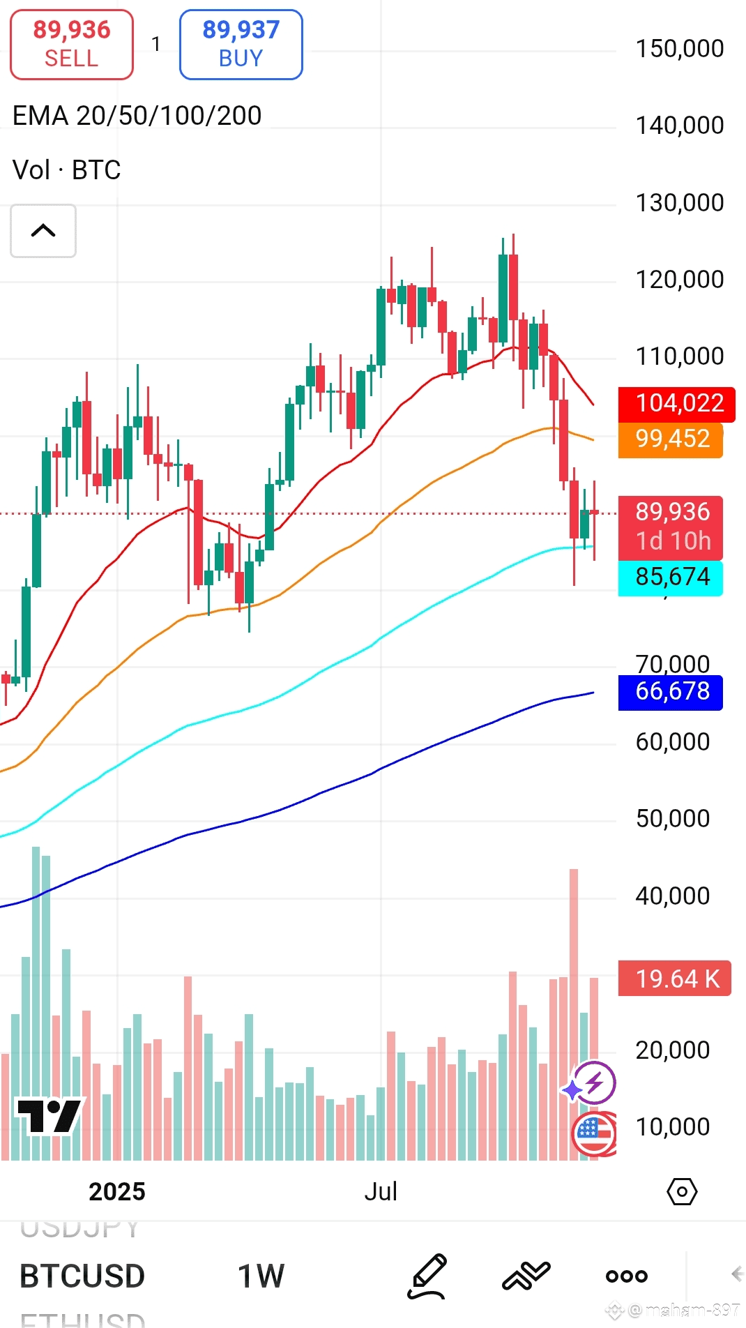The Bitcoin (BTC/USD) weekly chart, stretching from early 2025 into July, signals a significant shift in market dominance from buyers to sellers. After an impressive rally and consolidation around the $100,000 to $120,000 range, $BTC has entered a sharp corrective phase, breaking critical support levels.