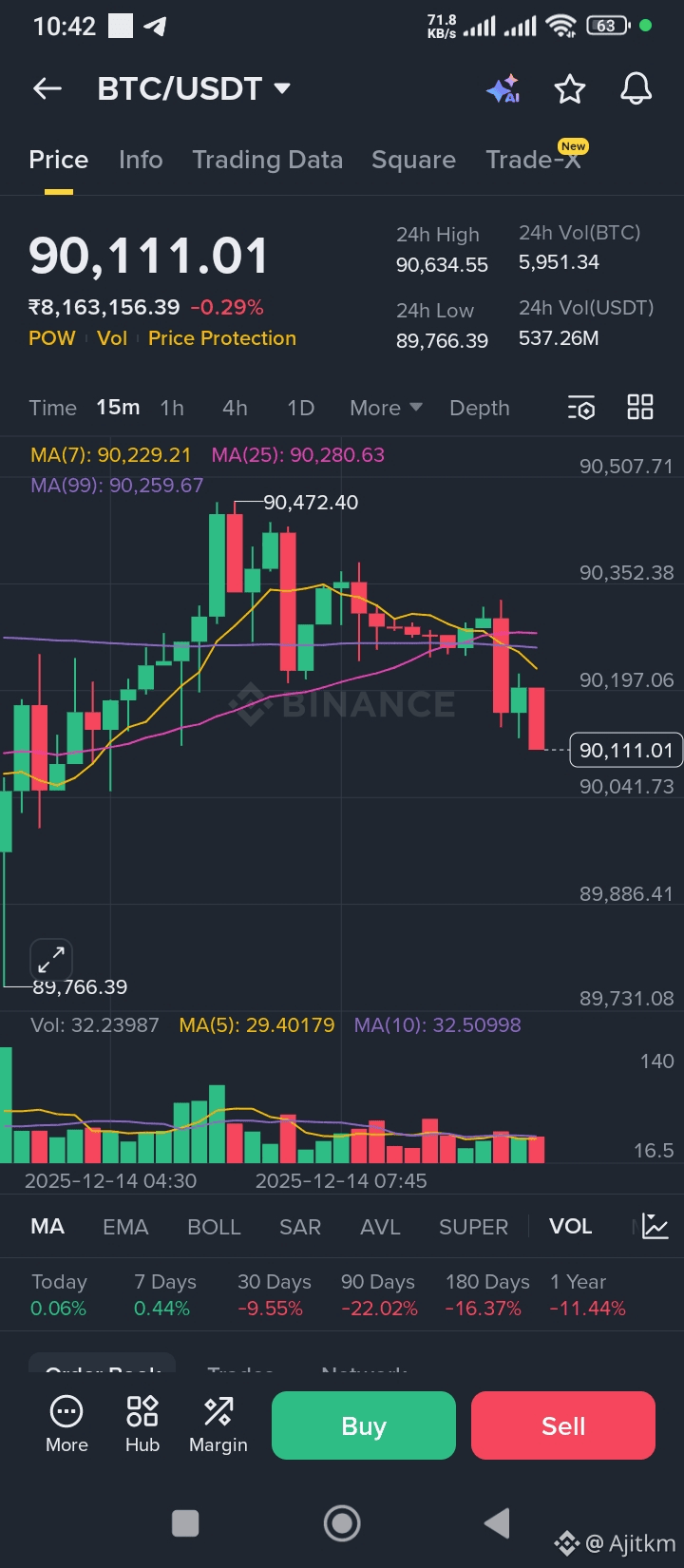 #BTC price remains relatively stable around the $90,000 level—Wait, the current price is significantly lower than $90,000. Let's analyze the current actual range.