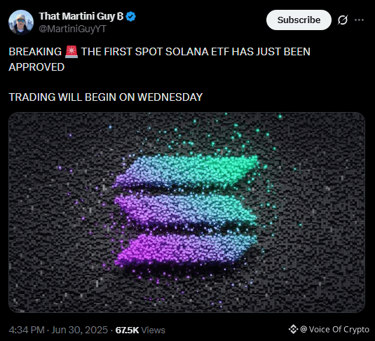 Solana spot ETFs launched earlier this year, and are expected to draw in capital in 2026 | source: X