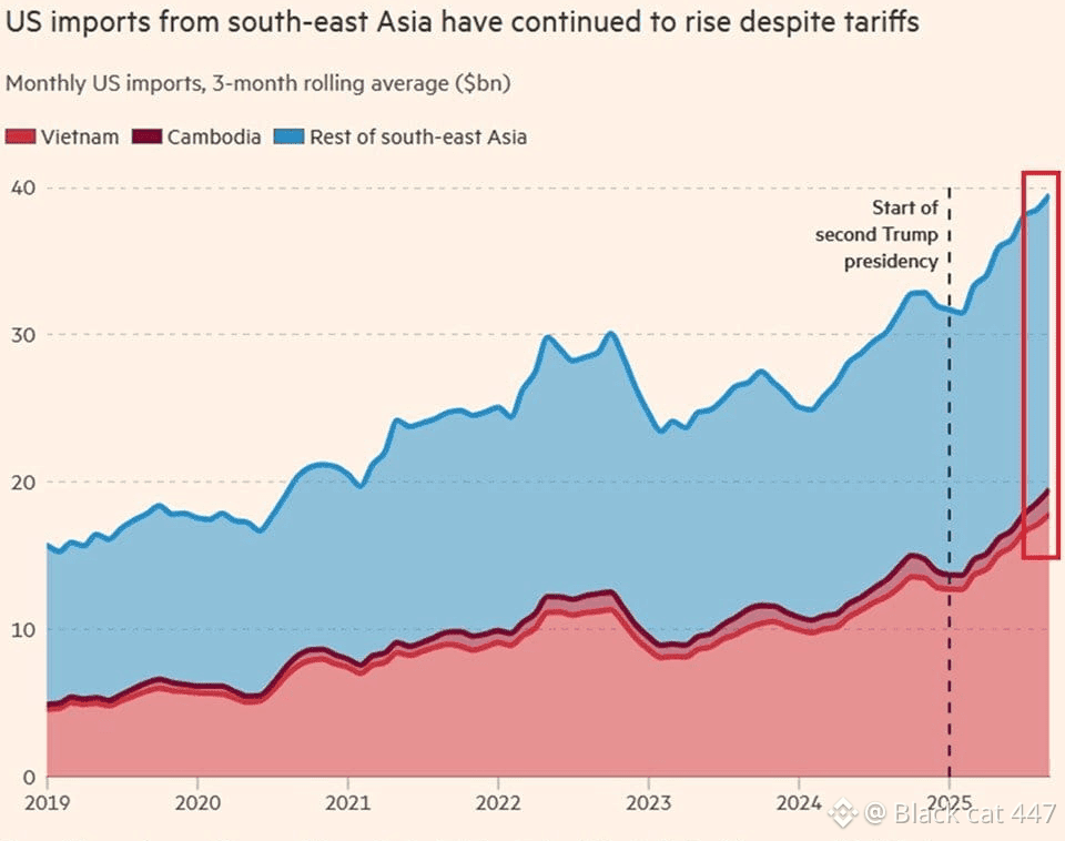The global supply chain is undergoing a massive transformation. Despite aggressive tariff structures, U.S. imports from Southeast Asia skyrocketed by 25% YoY in Q3 2025, hitting a historic $40 billion average. $BTC