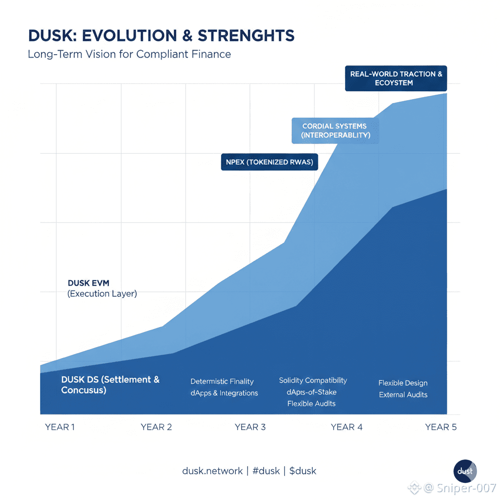The pragmatic side shines in the EVM choice. DuskEVM is fully compatible, leaning on familiar Solidity tools to make it easy for developers to jump in and build real apps. Sure, it has a slightly longer finalization window right now compared to the base layer—not ideal for ultra-time-sensitive trades—but that feels like a thoughtful trade-off: get adoption rolling on the execution side while keeping the settlement foundation steady and predictable. Infrastructure people make those kinds of calls.