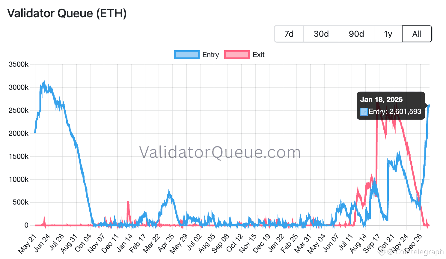 “Ethereum’s entry queue is at the highest level in 2.5 years,” said analyst Ted Pillows in a post on Sunday, adding: