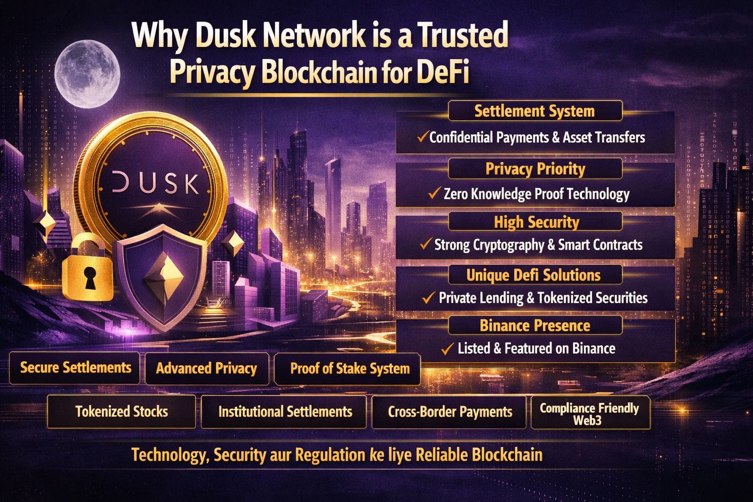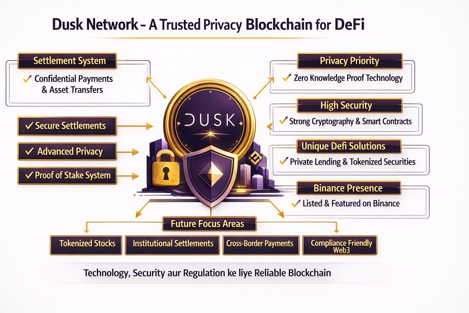 Strong technology clear use case experienced team aur regulatory focus Dusk ko trustworthy banata hai. Ye sirf hype coin nahi balki real world finance problems solve karta hai.