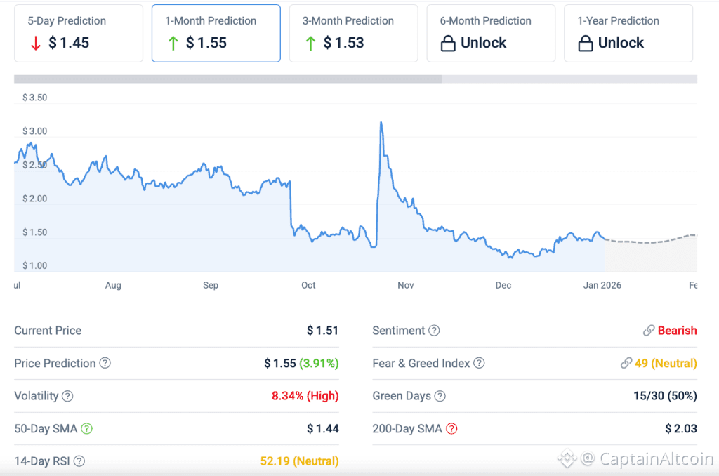 Filecoin trades around $1.35, rebounding modestly as buyers stepped in near support. Accumulation patterns and anticipation around its Onchain Cloud roadmap have helped stabilize sentiment.