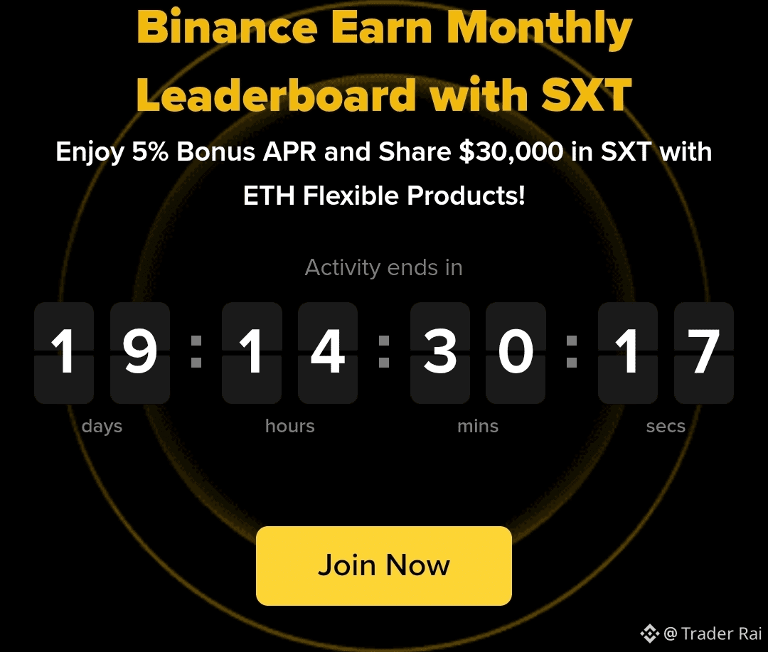 In the fast-moving crypto market, opportunities that combine low risk, flexibility, and real rewards are rare. That’s exactly why the Binance Earn Monthly Leaderboard with SXT has caught the attention of long-term ETH holders. Instead of asking users to trade aggressively or lock funds for long periods, this campaign focuses on something much simpler: earning more from assets you already hold.