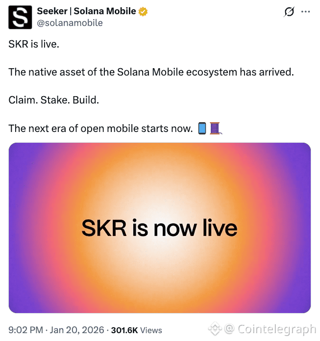 The Seeker (SKR) token, the utility and governance asset of the Solana Mobile ecosystem, went live on Wednesday, the company said in a post on X.