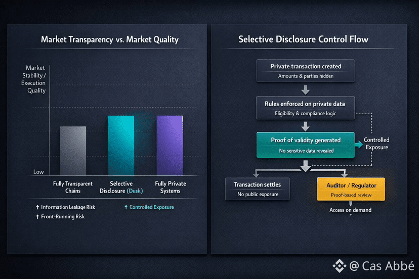 The architecture of Dusk is shaped such that it minimizes that friction by making exposure configurable instead of binary. This does not ensure success, but it eliminates one of the biggest structural disjunctions between the blockchain dynamics and financial reality.