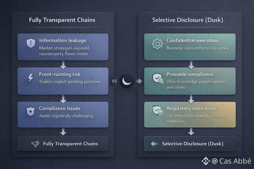 The design of Dusk tries to be in between that issue. Its design is designed in such a way that it can ensure confidentiality to the market activity and maintain verifiability to the overseers. That is not a philosophical position--it is a reaction to a structural imperative. Markets do not fail because the market participants are concealing too much. They are not successful because information leaks at an inappropriate moment.