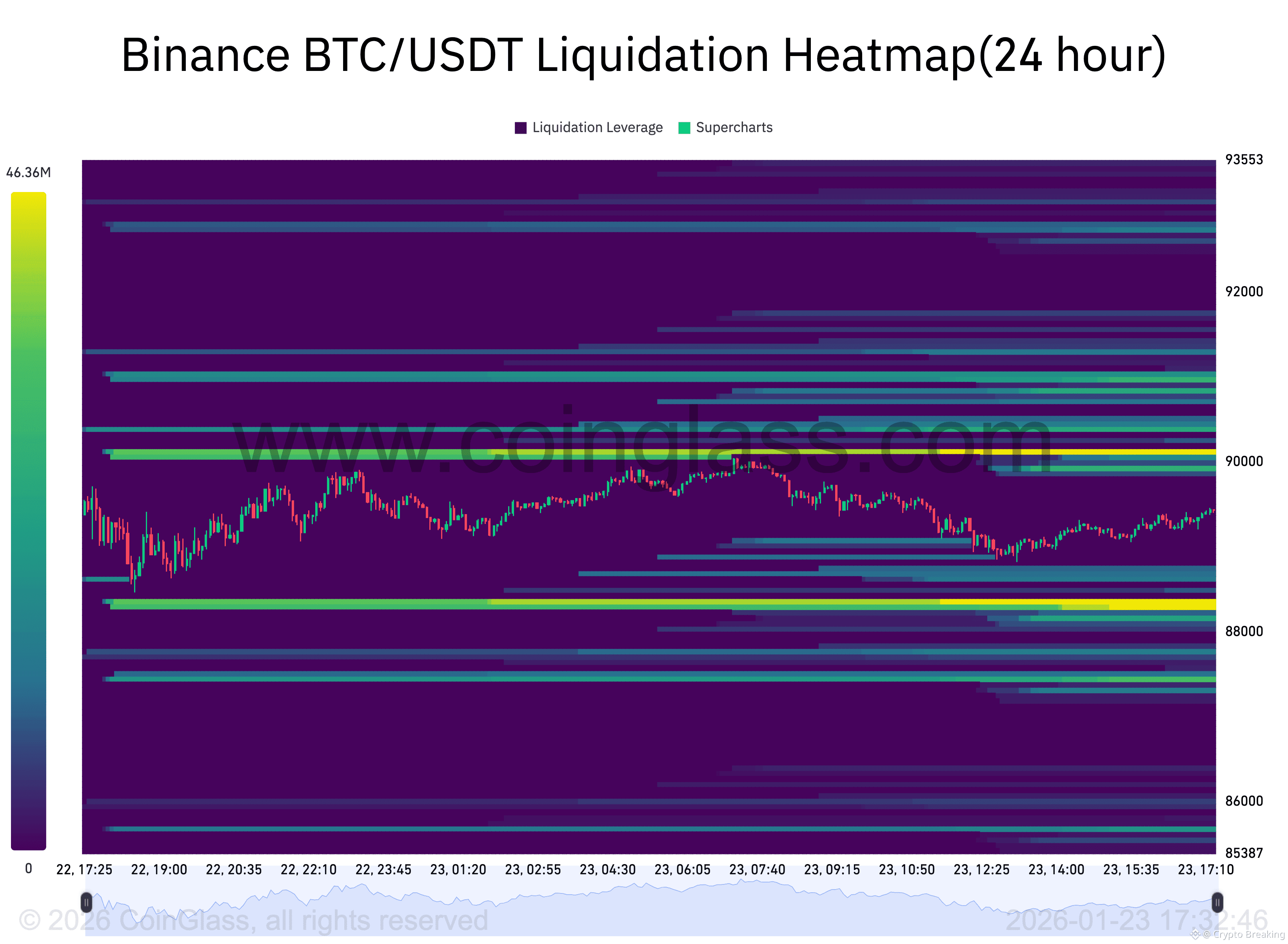 Earlier in the session, BTC/USD reportedly “filled” an open gap near 88,000 before rebounding, leaving the bulk of the remaining gaps above the current price. Monitoring resources showed that liquidation pressure thickened around 88,300 and 90,100 as the U.S. trading session approached, suggesting a concentration of leverage around those price levels and the potential for sharp moves if liquidity shifts.