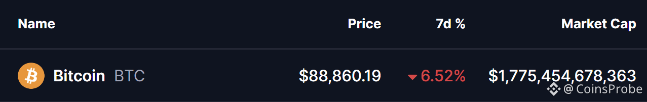 The broader cryptocurrency market has seen a mild pullback this week following a strong start to the year. Bitcoin (BTC), which recently rallied above the $95,000 level, has cooled off and is now trading below $89,000, marking a weekly decline of around 7.6%.