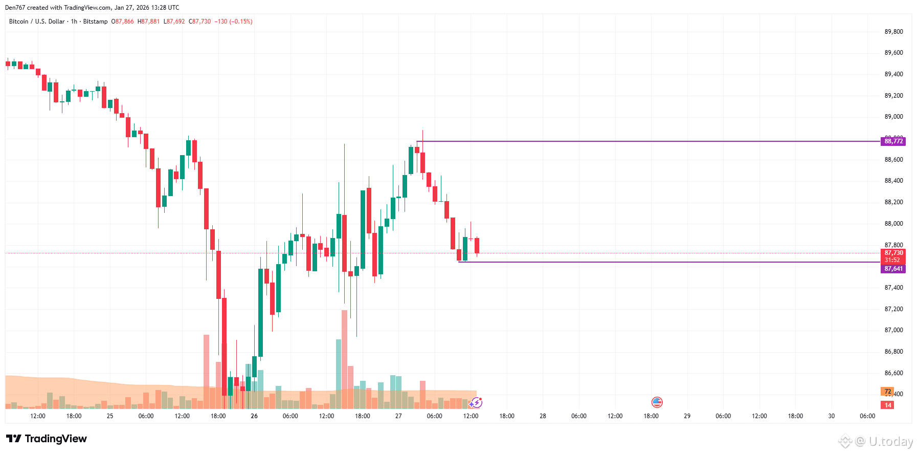 On the hourly chart, the price of BTC is going down after a false breakout of the local resistance at $88,772. If a breakout of the local support occurs, one can expect a test of the $87,000 zone soon.