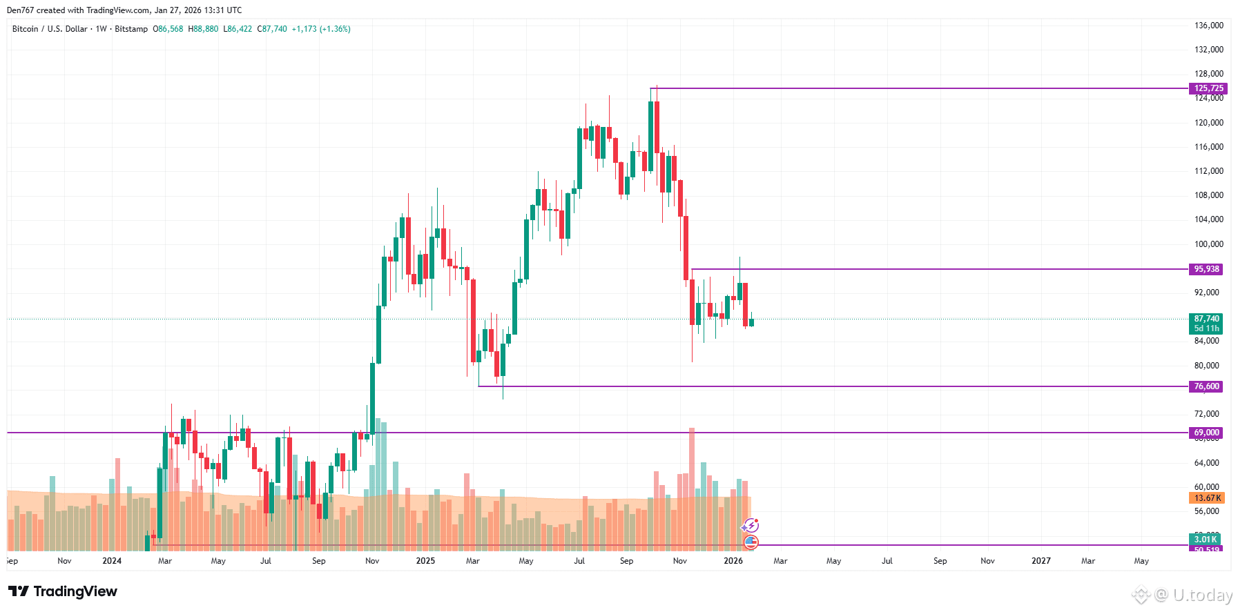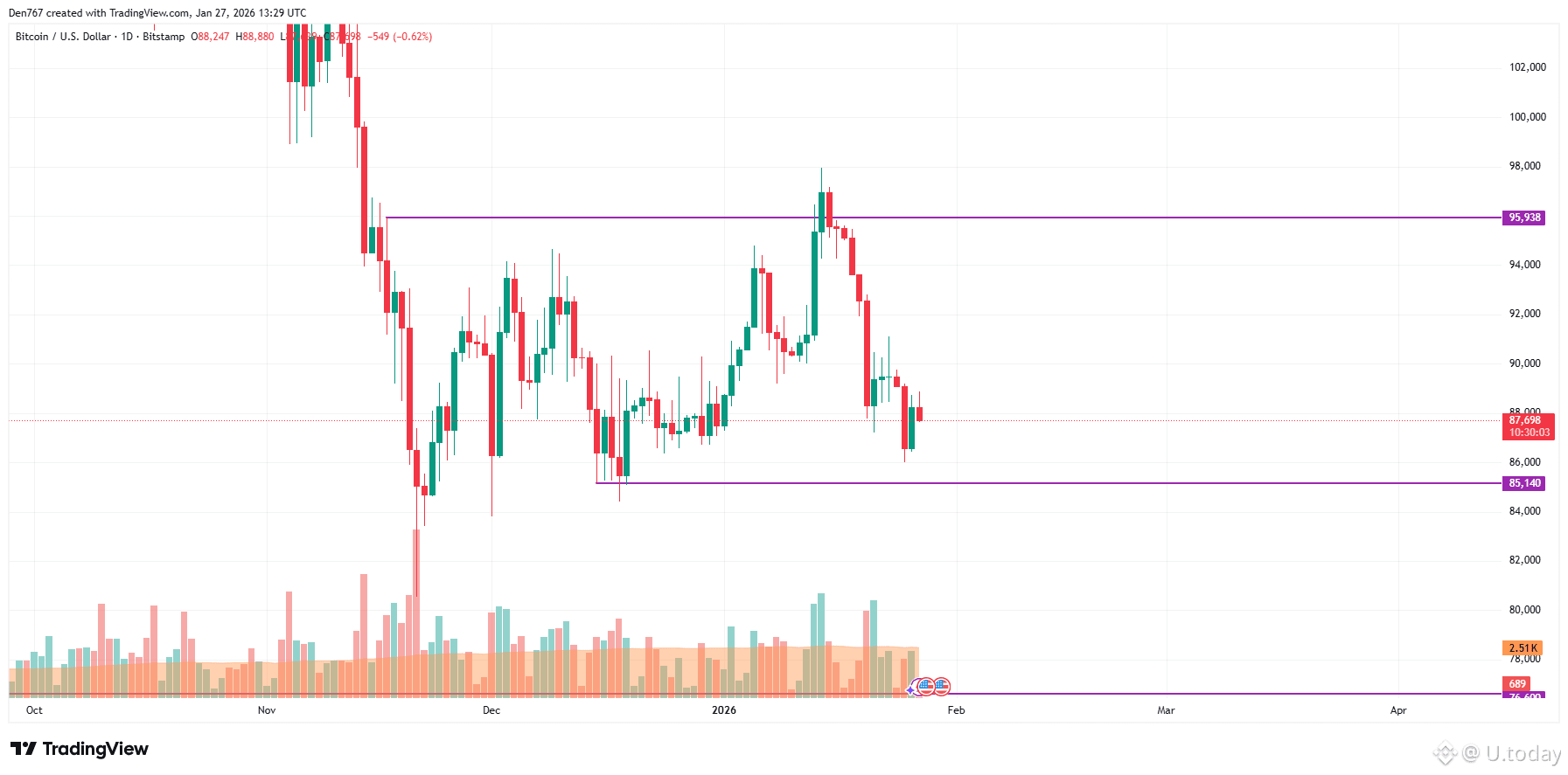 From the midterm point of view, one should wait until the weekly bar closes. If it happens below $86,000, the accumulated energy might be enough for a test of the $80,000 zone.