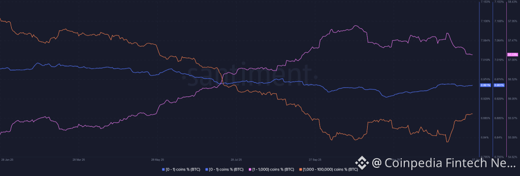 Despite the lagging BTC price USD, on-chain supply data suggests selling pressure remains limited. Wallets holding between 1,000 and 100,000 BTC continue to accumulate at notable levels. Interestingly, even the smallest holders addresses holding 0 to 1 BTC are adding exposure, reinforcing a broader accumulation trend.