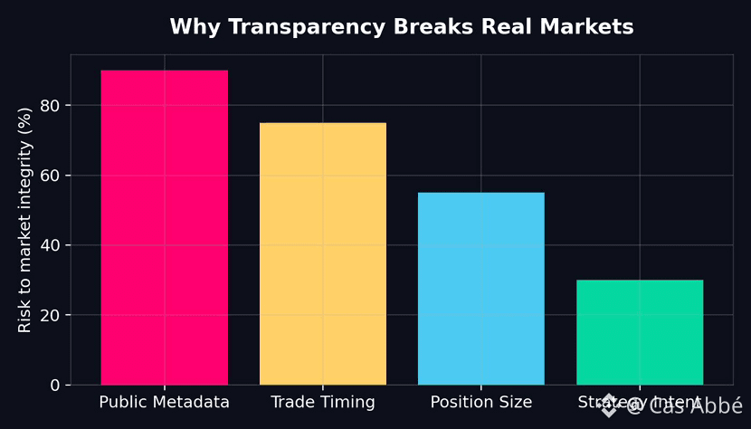 Transparency has been confused with honesty in crypto. Transparency leaks in the financial markets have an intent. Strategies can be reverse-engineered in case the sizes of trade, timing, counterparties, and flows are visible. This does not only harm traders but renders markets weak. Organizations will not be able to run in a world where all actions are published metadata.