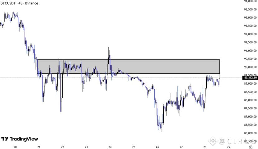 After this flush, Bitcoin has stabilized. But stabilization does not mean strength. Right now, Bitcoin is moving inside a range. It is not trending upward and it is not fully breaking down either. This is a classic sign of uncertainty.