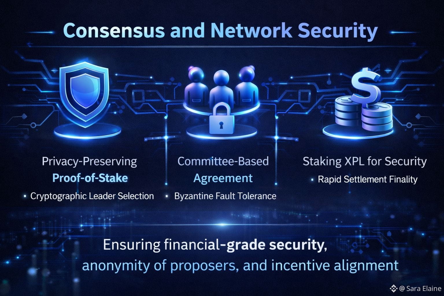The network avoids disjointed security systems and ensures long-term ecosystem survival with $XPL as the only privileged asset. Sybil resistance is strengthened by the token's design, which shields the network from malevolent individuals and promotes an honest and open economic system. To avoid targeted assaults, censorship, or front-running, Plasma uses a Proof-of-Stake consensus with cryptographic leader selection that preserves privacy by keeping block proposers anonymous. The network is protected by staked $XPL tokens, and committee-based consensus enables quick finality with Byzantine fault tolerance. This guarantees that the network can handle financial-grade applications that need strong security assurances, quick settlement, and great reliability.