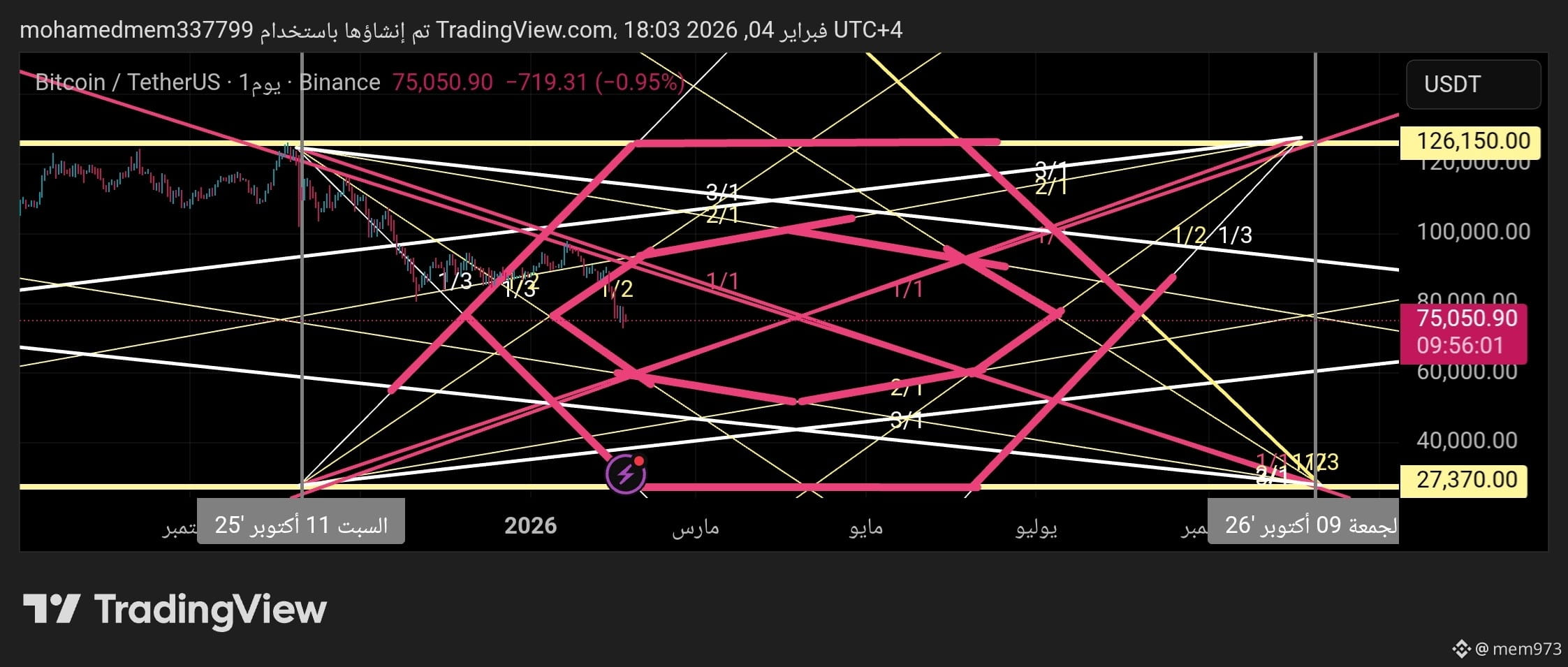 تحليل البيتكوين #BTC باستخدام التحليل الزمني والرقمي