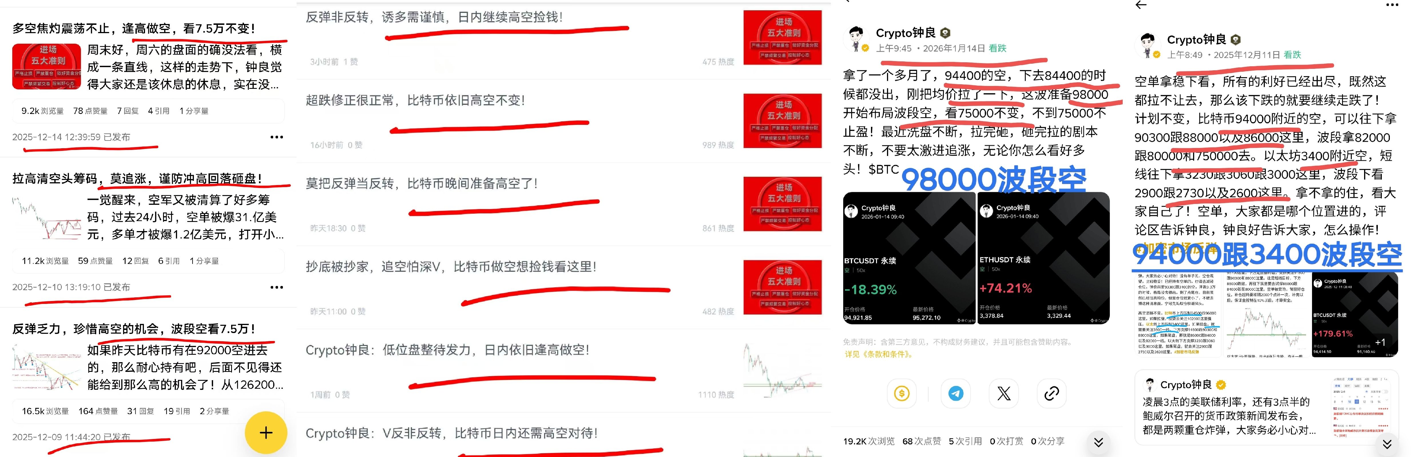 鱼龙混杂,龙飞色舞,真心希望每个散户睁开双眼,多点理性,多点判断,多点慎重!没有谁的U不是真金白银换来的,请慎重,慎重,再慎重!年关了,给父母,给孩子,包点红包,多置办点年货,不香吗?利润,从来不是博出来的,而是心平气和,一步一个脚印,慢慢一单,一单,积累出来的!钟良没有攻击任何人的意思,只是行情波动大,满市场的盈利让人眼花缭乱,合约市场加了杠杆,放大了欲望,很容易让人上头,失去理性,所以说一些不太好听的大实话,想让大家降降温,保持冷静,理性!行情每天都有,但是U不是无限子弹模式,且爆且珍惜!$BTC