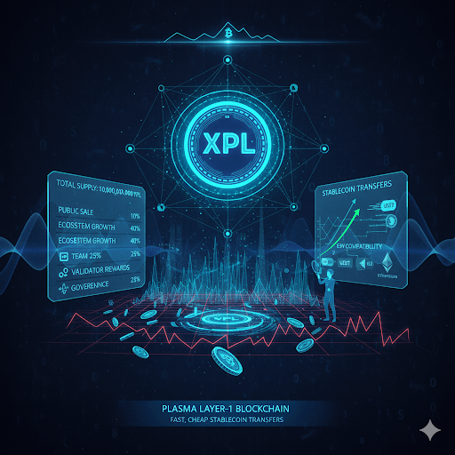 Plasma’s $XPL is the native utility and governance token of the Plasma Layer-1 blockchain, built to enable fast, cheap stablecoin (especially USDT) transfers and global digital payments. The network combines Bitcoin security with Ethereum Virtual Machine (EVM) compatibility, letting developers deploy smart contracts and dApps with familiar tooling. XPL has a fixed total supply of 10 billion tokens, distributed across public sale (10%), ecosystem growth (40%), team (25%), and investors (25%), with vesting schedules to support long-term development. �
