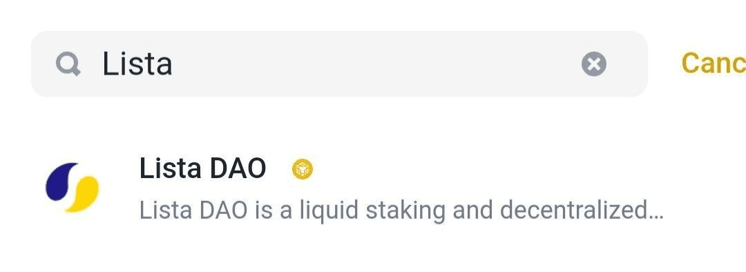 Once your BNB funds are, in your Web3 wallet go to Discover. Open up the Lista Dao Dapp.