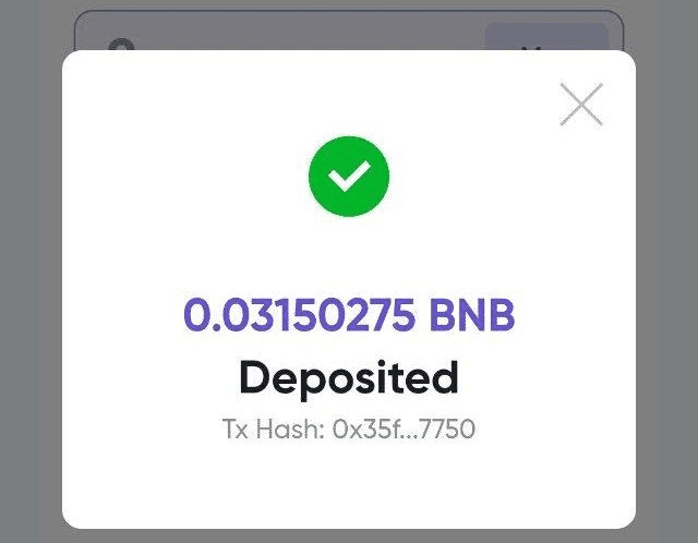 Great job, on your deposit of $BNB! Your Web3 Quest has been successfully completed.