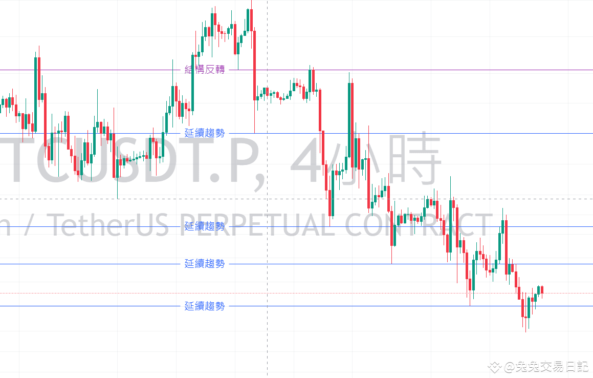 首先從大週期4小時來看,低點不斷被打破,高點持續創低。