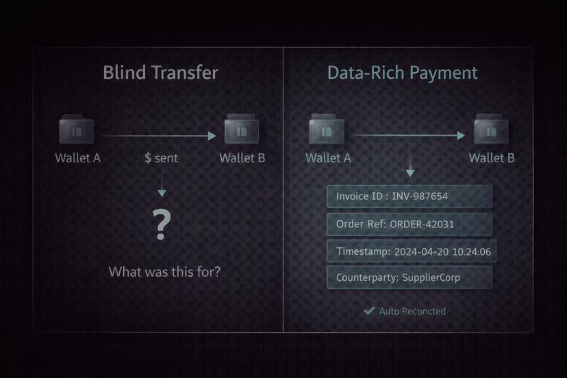 In real businesses, nobody sends funds just for the joy of it. Every payment is tied to something concrete. An invoice. A salary. A supplier settlement. A subscription renewal. A refund. A dispute. A reconciliation entry. Banks and payment processors dominate business finance not because they are fast, but because they carry structured data that accountants and finance teams can actually work with.