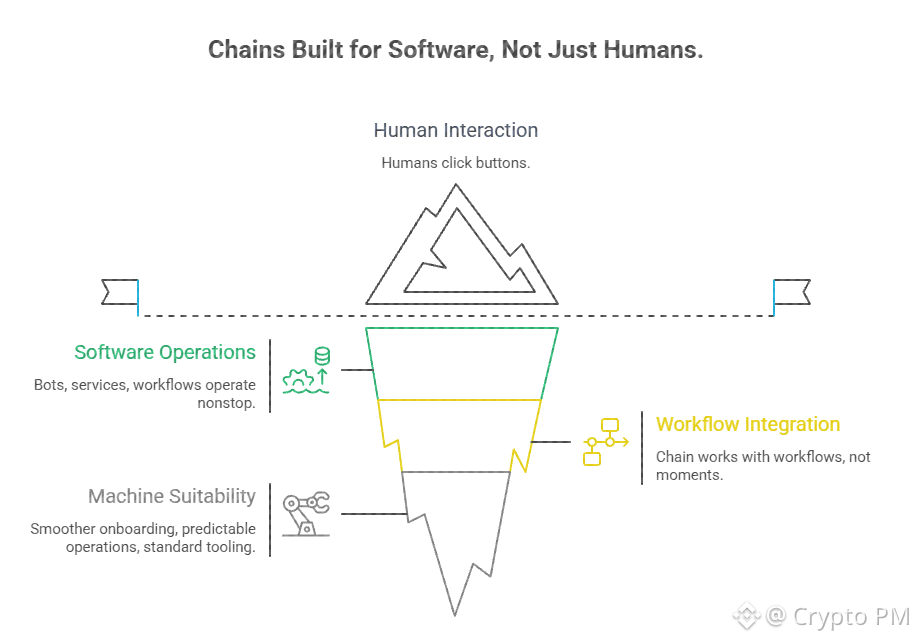 There is a difference between chains built for humans clicking buttons and chains built for software that runs continuously. Bots services workflows agents operate nonstop. Humans come later.