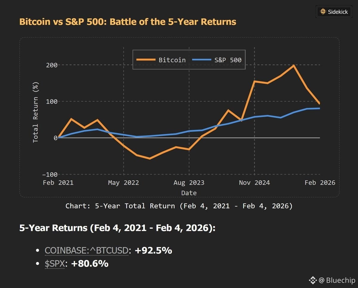 ๐ 1. BITCOIN VS S&P 500: 5-Year Returns Battle (Feb 2021 - Feb 2026)