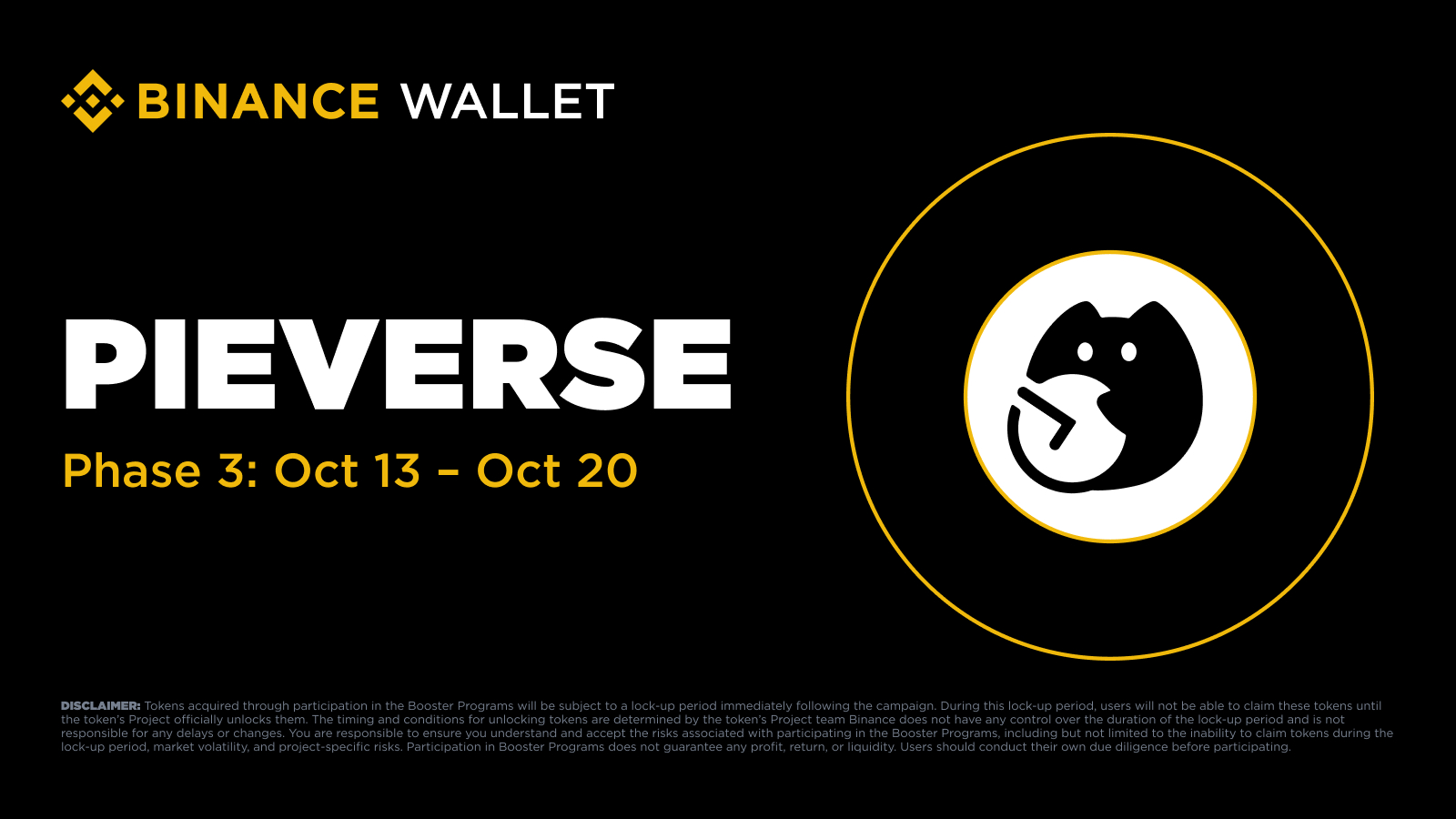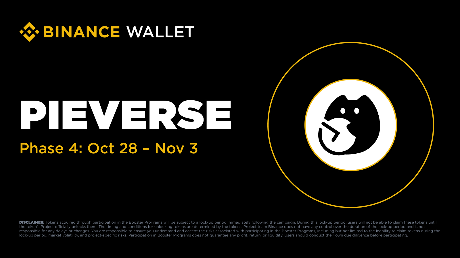 Tokens acquired through participation in the Booster Campaigns will be subject to a lock-up period immediately following the campaign. During this lock-up period, users will not be able to claim these tokens until the token’s Project officially unlocks them. The timing and conditions for unlocking tokens are determined by the token’s Project team Binance does not have any control over the duration of the lock-up period and is not responsible for any delays or changes. You are responsible to ensure you understand and accept the risks associated with participating in the Booster Campaigns, including but not limited to the inability to claim tokens during the lock-up period, market volatility, and project-specific risks. Participation in Booster Campaigns does not guarantee any profit, return, or liquidity. Users should conduct their own due diligence before participating.