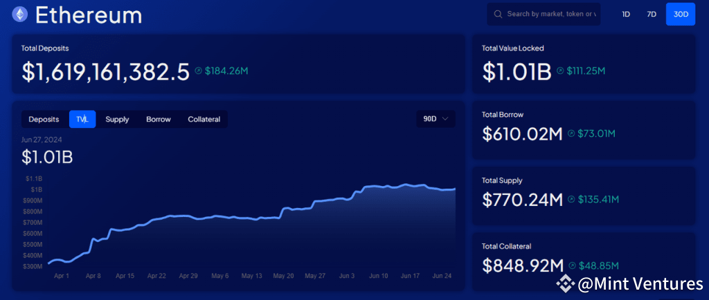 2. Bilateral Network Effect: Similar to many online platforms, DeFi lending operates as a classic bilateral market where depositors and borrowers form the respective sides of supply and demand. An increase in activity on one side—whether in deposits or loans—naturally boosts activity on the other, setting a high barrier for new entrants. Moreover, the greater the overall liquidity of the platform, the smoother the transitions for both deposits and withdrawals become, and the more likely to be favored by whales, which in turn stimulates the growth of the platform business.