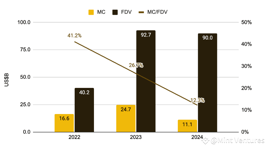 In the previous section, we noted that one of the main reasons for the continuous decline in the current cycle of altcoin valuation is the high emissions from many projects based on inflated valuations, coupled with the negative expectations from the large-scale unlocking of tokens.