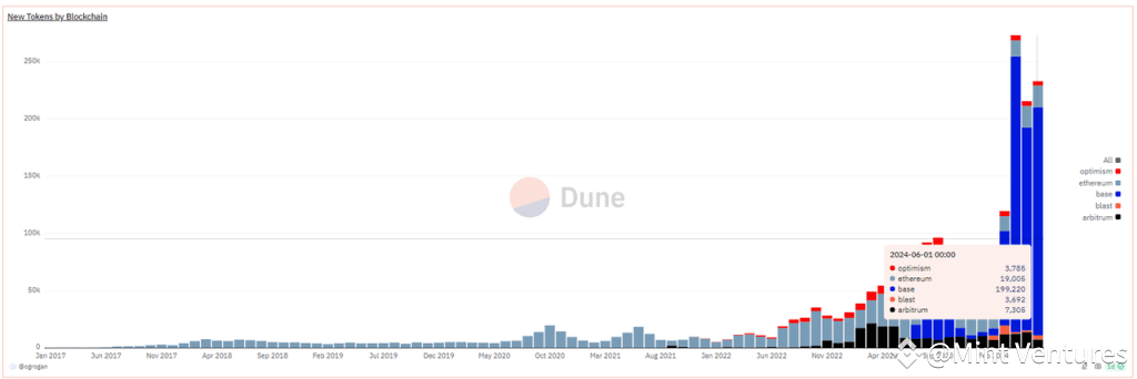 It is important to note that the above data only includes newly-issued tokens on EVM chains, with over 90% issued on the Base chain. In reality, even more new tokens have been issued on Solana. Whether on Solana or Base, most of the newly issued tokens are memecoins.