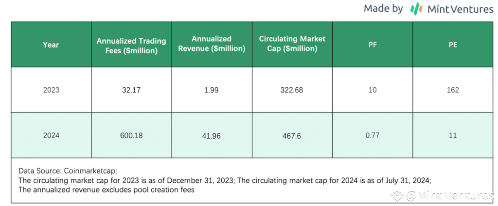 Due to the lack of historical data before 2023, the valuation is based on a comparison between Raydium’s valuation data from the first half of 2024 and the full year of 2023.
