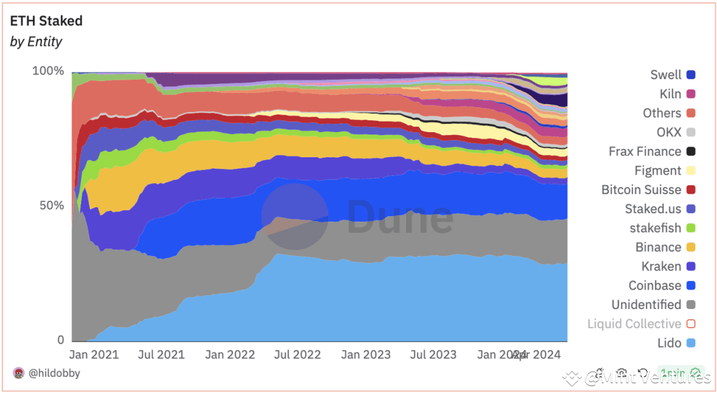 Members of the Ethereum community, including several from the Ethereum Foundation, have long harbored reservations about Lido’s dominant market share in staking. Vitalik Buterin has addressed these concerns directly, publishing an article that explored potential solutions, yet he refrained from endorsing any particular option. For those interested in a deeper dive, you can read our previous analysis: Evaluating Vitalik’s Proposals on Ethereum Staking.