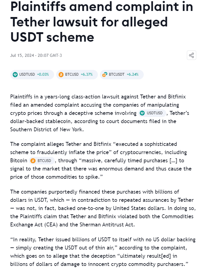 USDT and Bitfinex paid a settlement fine for this, they were also required to give statements to the US securities board for a period of 2 years, that 2 years ended in December 2023.