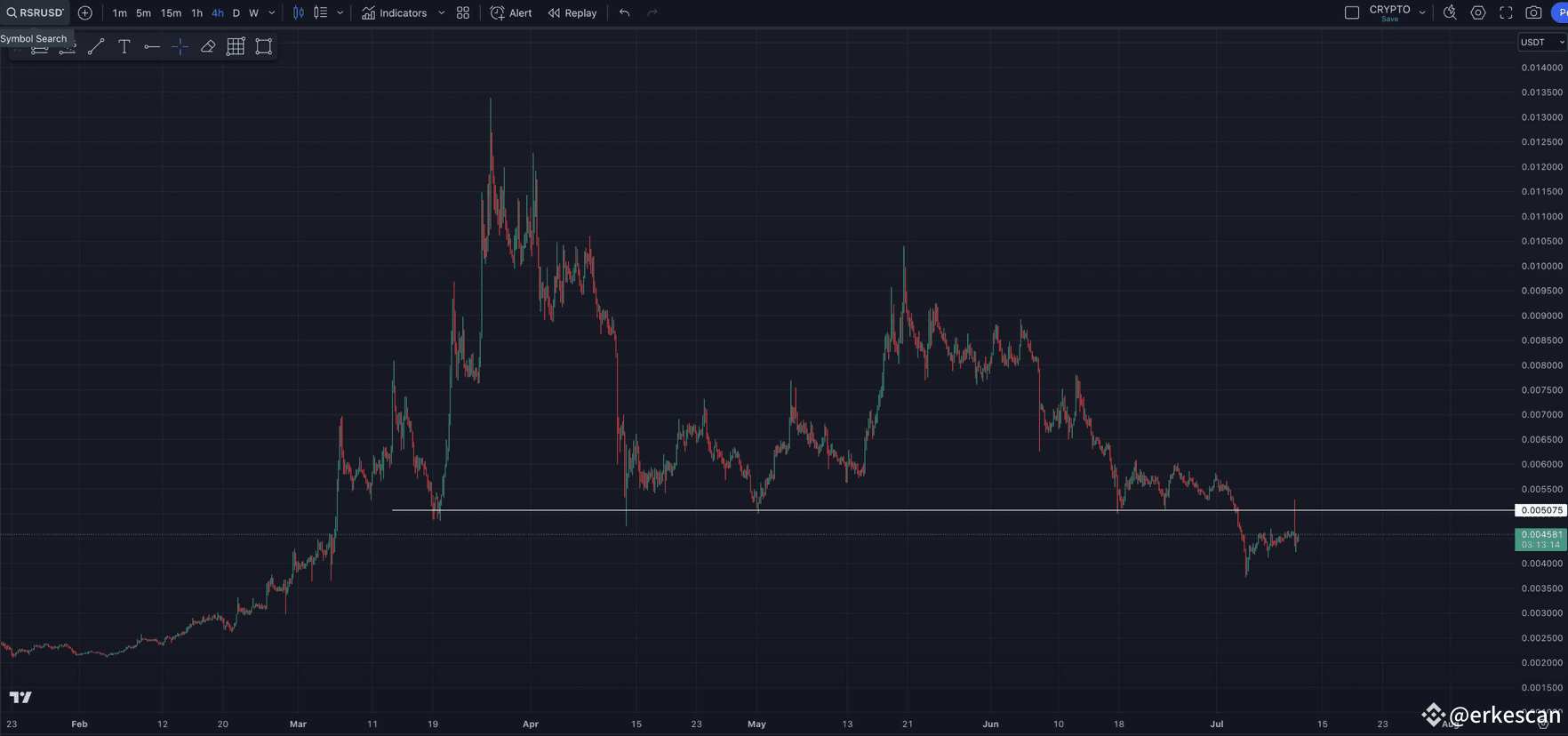 The 4-hour chart of RSR/USDT shows a significant support level that was broken down. This breakdown indicated a potential change in trend direction from bullish to bearish.