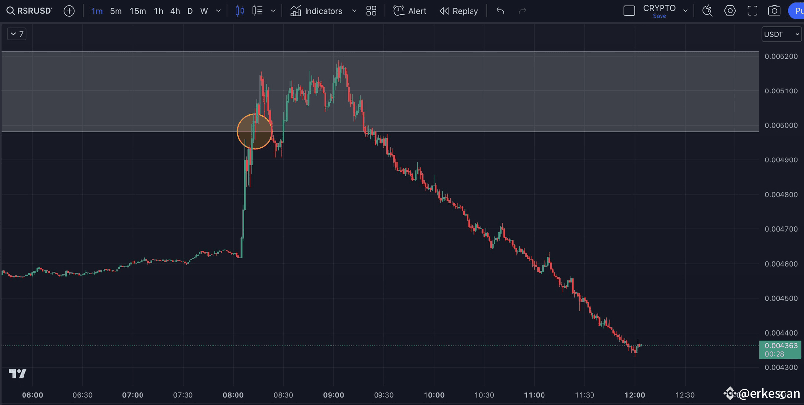 Based on the higher timeframe analysis and the confirmation from the OI spike, we could enter a short trade on RSR at the resistance level. The trade benefits from the confirmation of increased OI and the price action aligning with our higher timeframe analysis.
