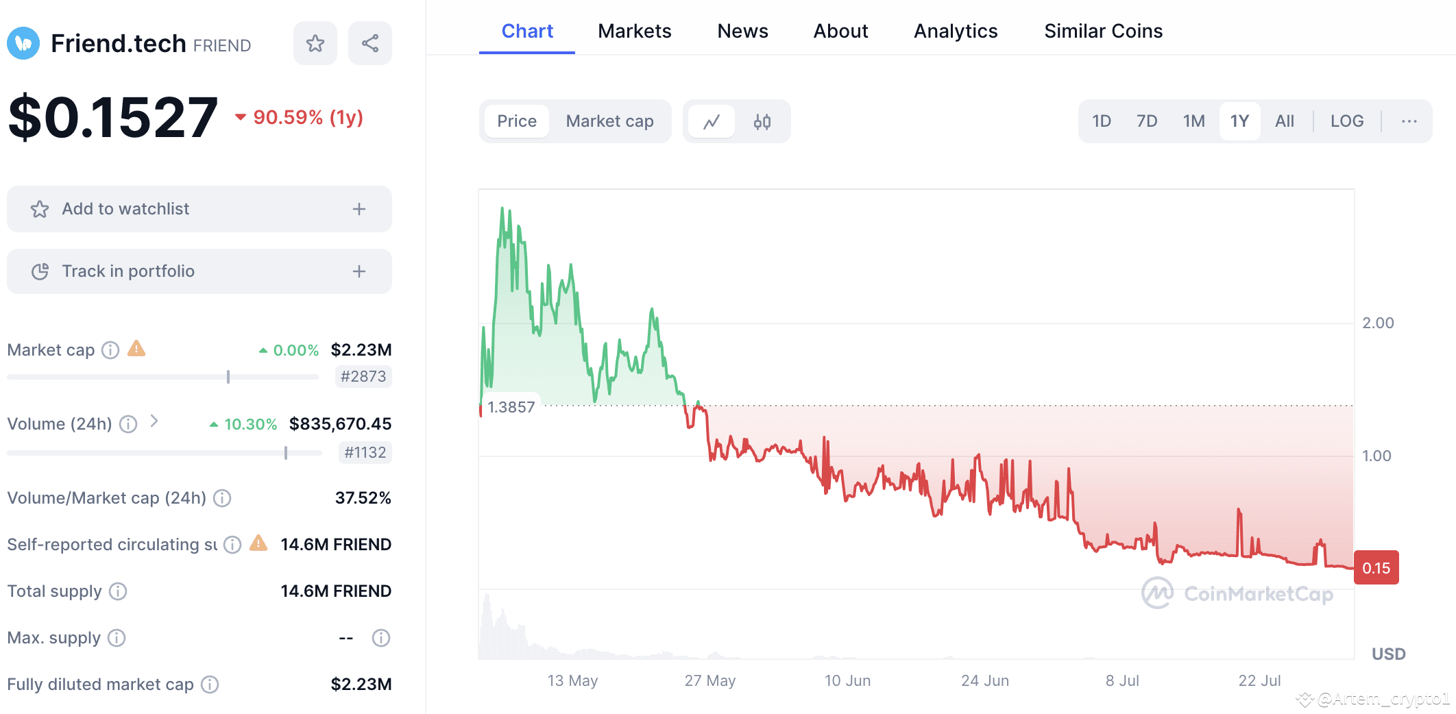 Users faced difficulties claiming their tokens, adding to the controversy. Blockchain data shows “Murphys1d” received a large share of FRIEND tokens, then unloaded over 55,000 tokens, causing a dramatic impact. The market saw FRIEND tokens drop 52.5%, plummeting from $3.26 to $1.32 within an hour of Murphys1d’s sell-off. Today (July 30th 2024) it’s worth only $0.153.