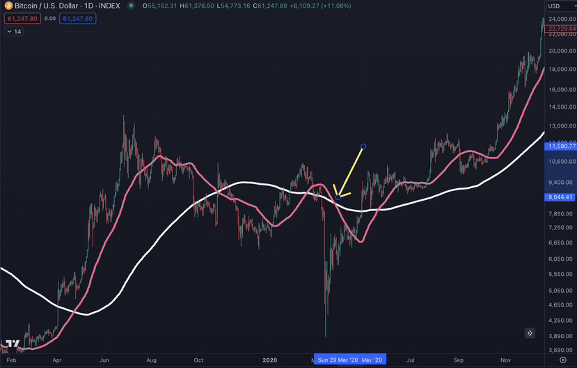 In 2020, #BTC rallied into the death cross, had a small pullback after it, then kept going (sort of like 2023).