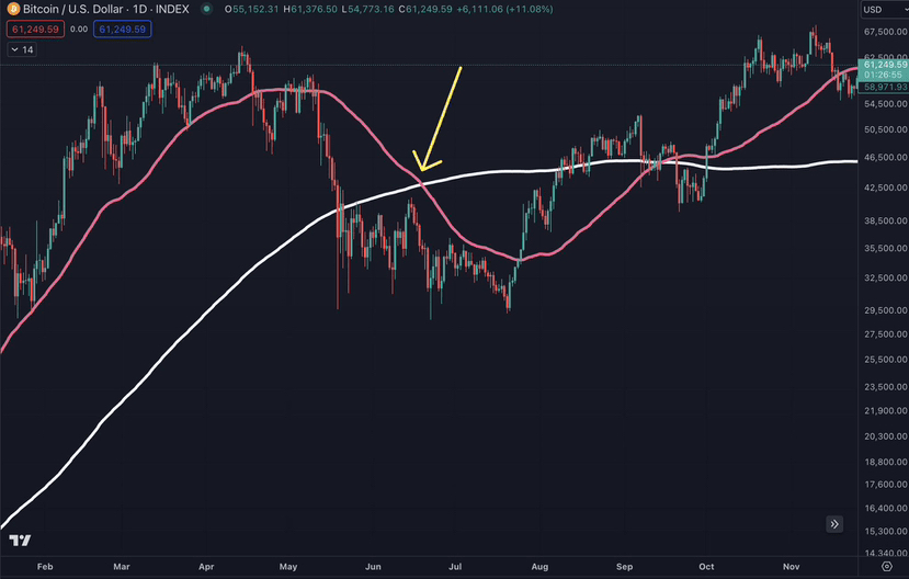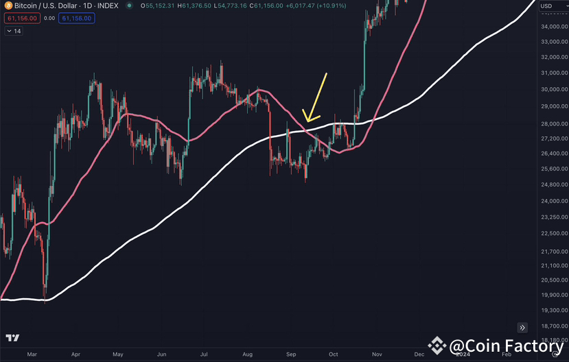 In 2023, #BTC started its rally just after the death cross. It then got above its 50D SMA and subsequently held it as support before going higher.