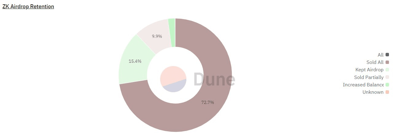 15.4% hold all their tokens, betting on zkSync ecosystem success, while 9.9% sold partially to lock in gains while staying in the game.